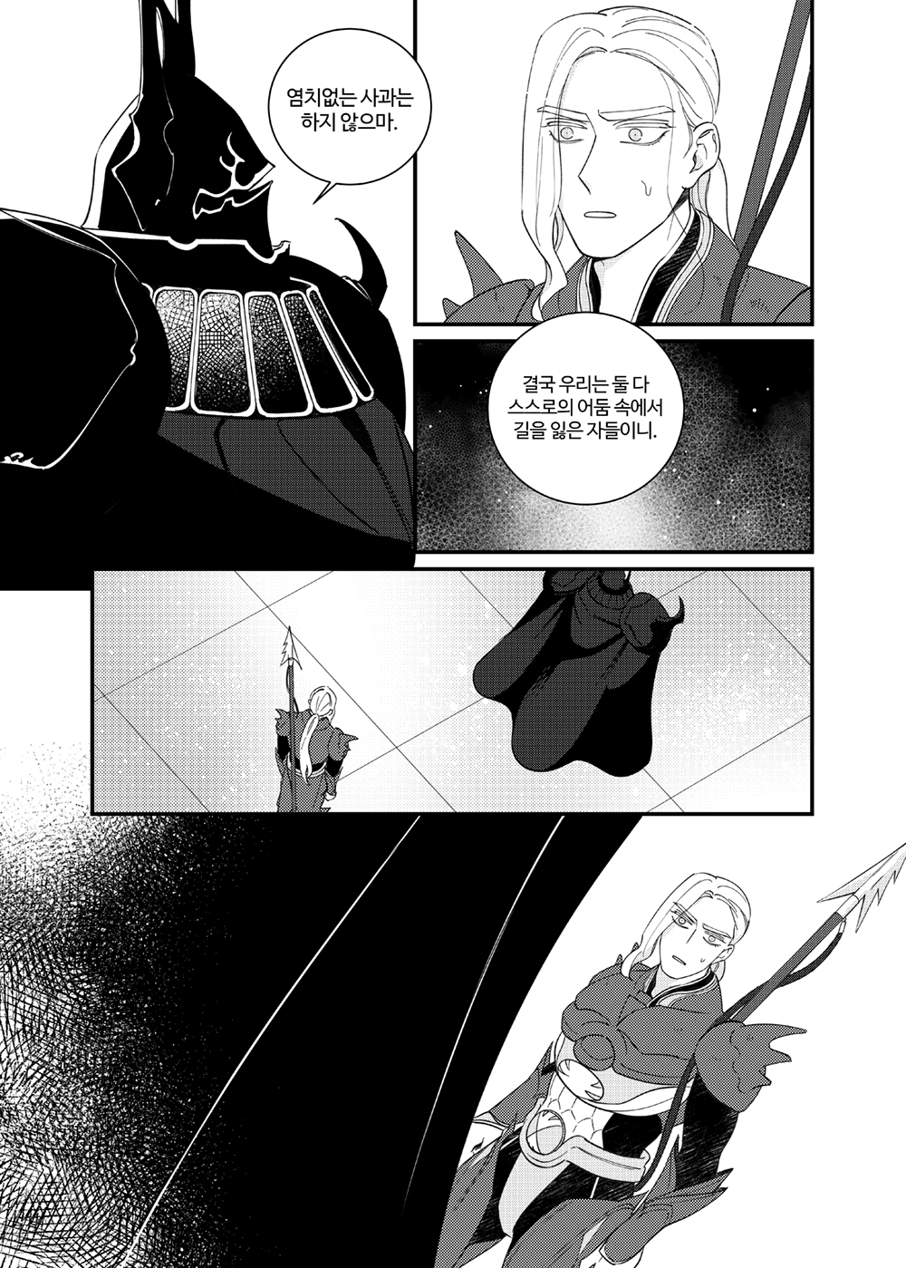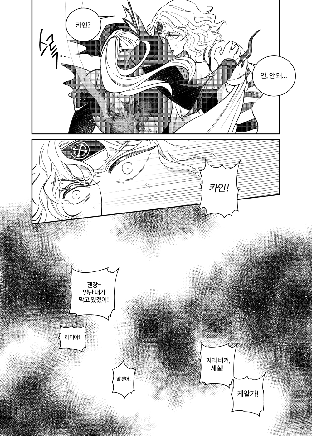 [FF4] Conclusion comics | 2020. 03. 28 리밋브 행사 코로나로 취소되어 통판한 카인중심 시리어스책. B5 60p 첫 17p 공개 (22년 7월 60p 전체공개로 수정) 공유하기 게시글 관리 바론성 2층 오른쪽 창가 comics [FFT/딜리람] 갈림길 2020.10.25 [DFF] 그 왕자의 단체 합숙 적응기 2019.11.23 [FF7] Hero 2019.11.23 [FF14] 류상사제 2019.11.23 comment